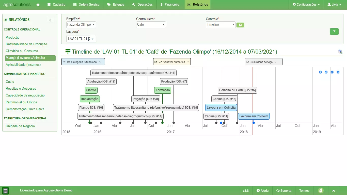 Informe de control de cultivos/animales (Timeline)