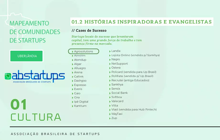 Agrosolutions citada en el mapeo del ecosistema de Uberlândia / MG: abstartups